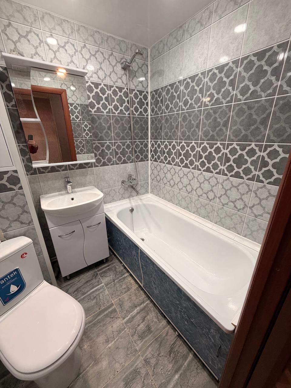 В ванной комнате сделан свежий, качественный ремонт. Полностью заменены все трубы, стояки и сантехника — вам не придется беспокоиться о коммуникациях долгие годы.